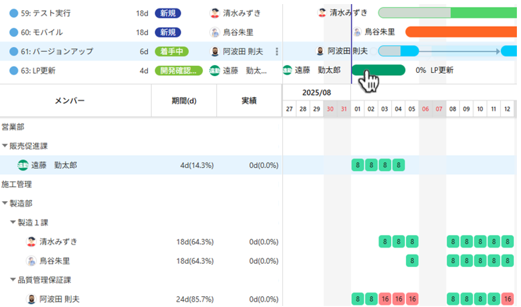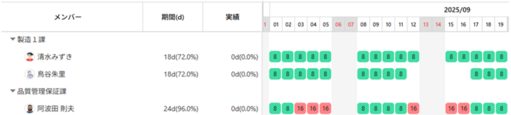 変更は、すぐさまリソースビューに反映され、メンバーのアサイン状況を確認できます。