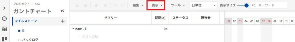 ガントチャート画面を開いてください。