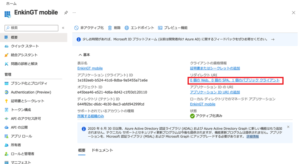 リダイレクト URI: 「パブリック クライアント/ネイティブ (モバイルとデスクトップ)」