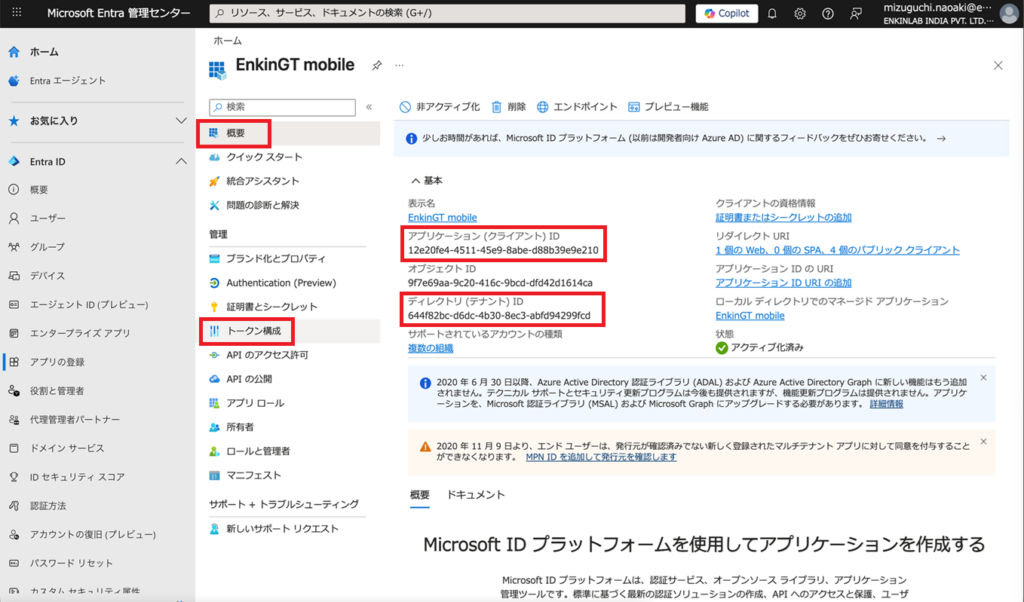 以上でMicrosoft EntraID側の設定は完了です。次に設定した値をEnkinGT側に反映します。